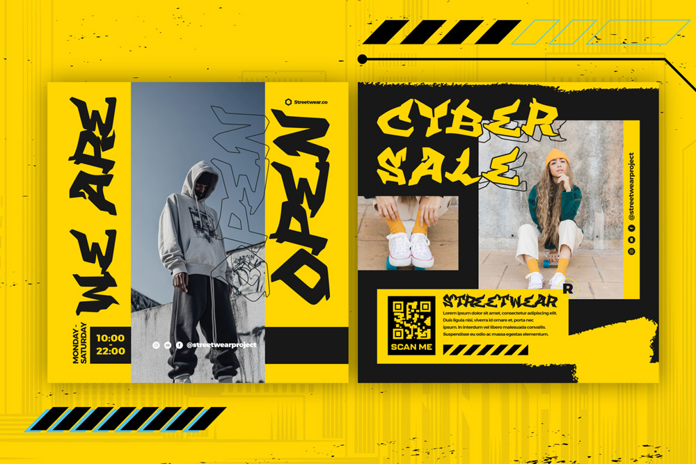 Social Media & Motion Graphics: Grab attention instantly with bold cyber graffiti.