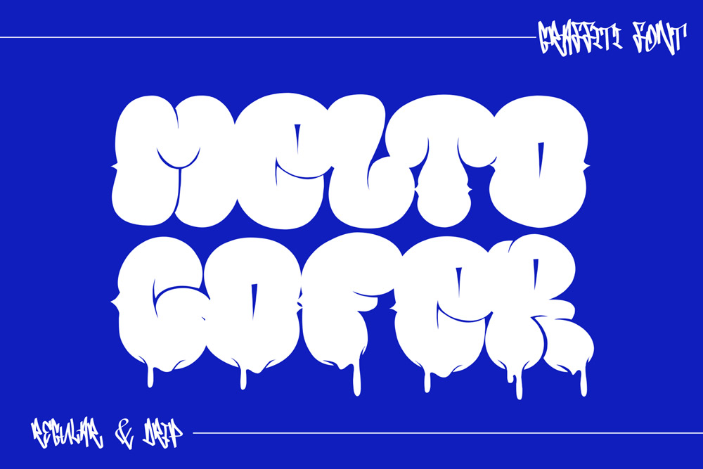 Another reason designers choose this graffiti font is its flexibility. With both regular and drip styles included, Melto Gofer allows for easy variation within a single project. This makes it a powerful tool for creating cohesive yet dynamic designs.