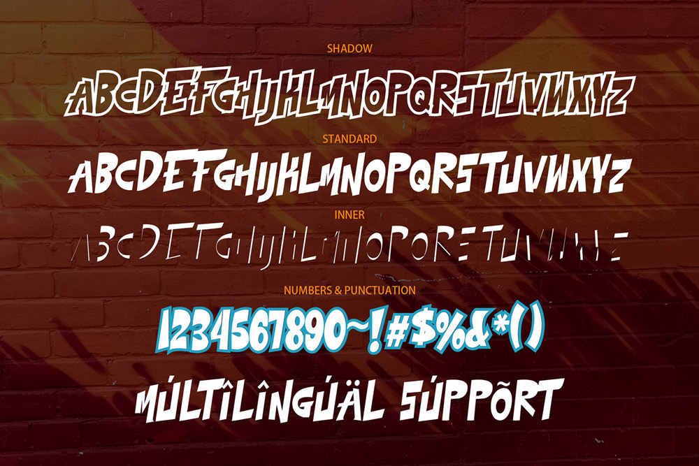 Supports multiple languages, making this graffiti font suitable for global branding and international projects.