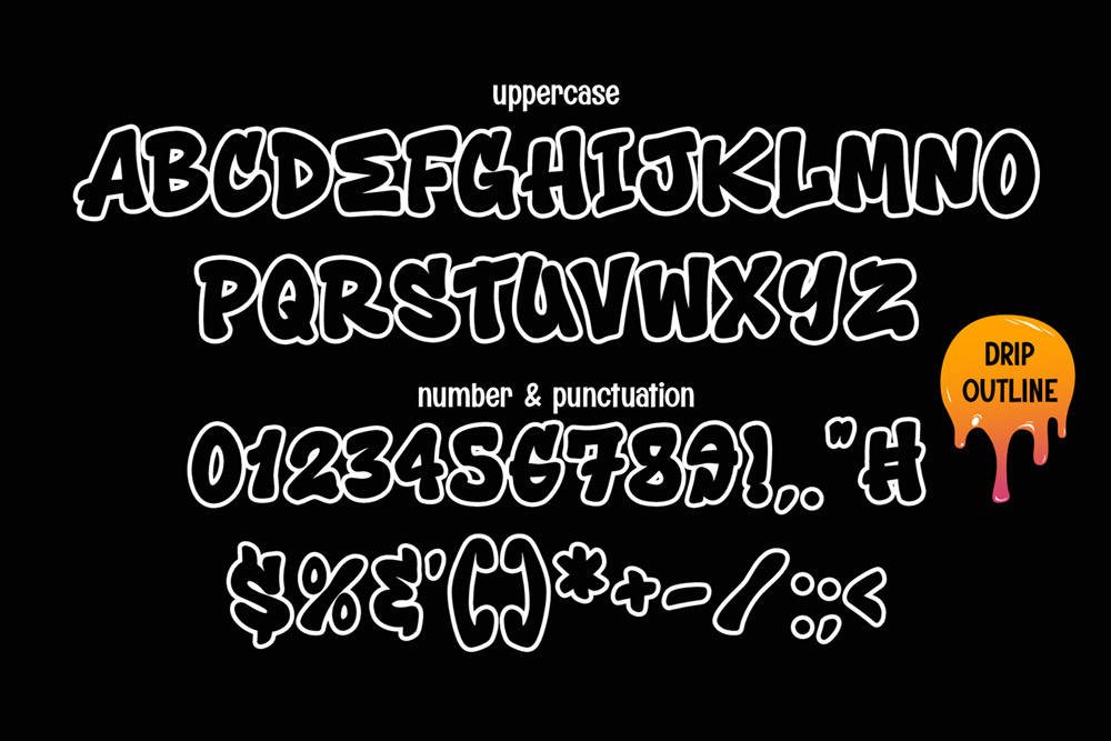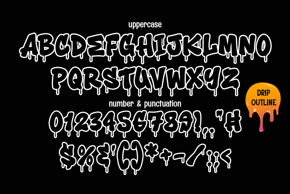 4 Styles in One Package: Clean, Drip, Outlined Regular, Outlined Drip.